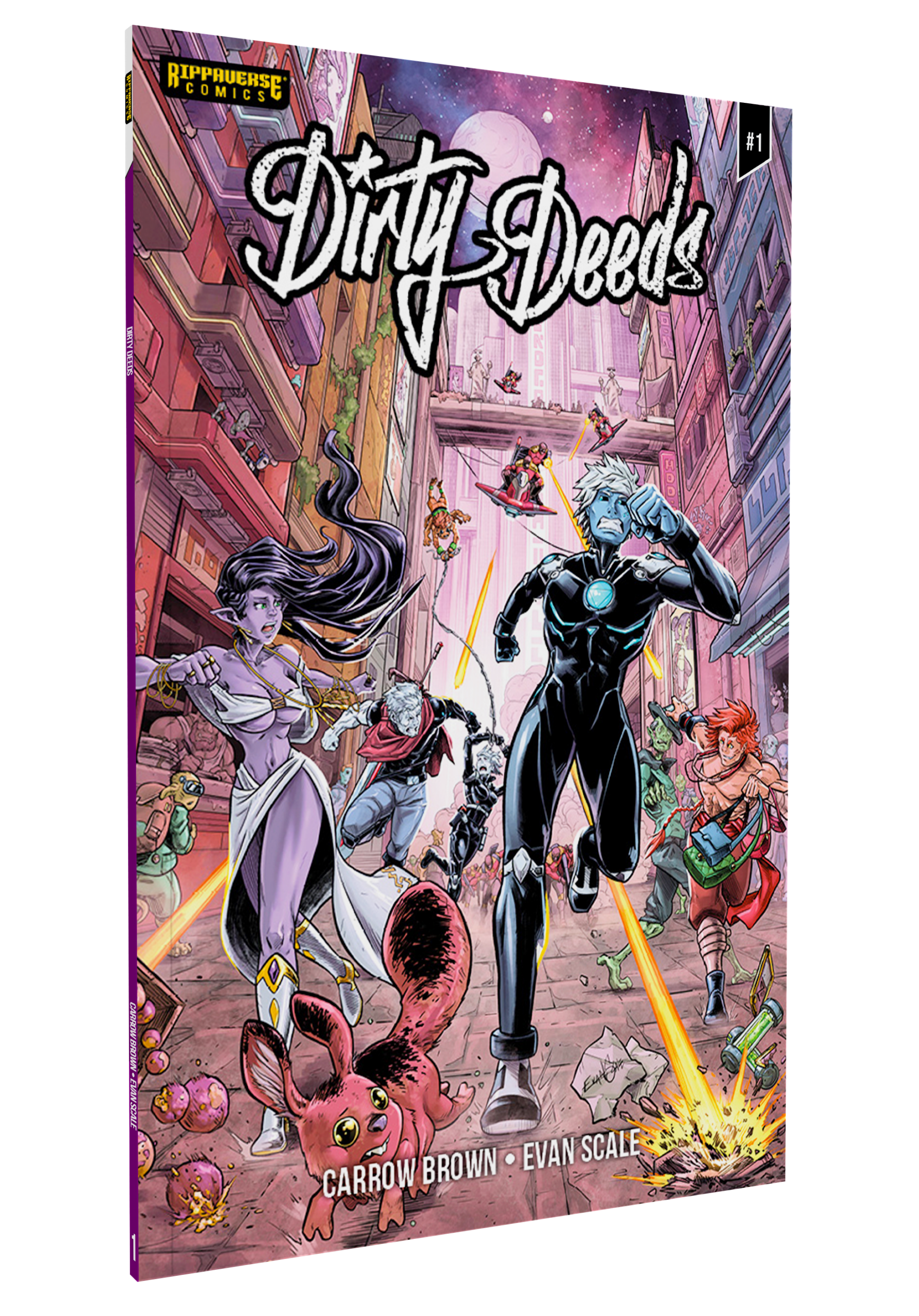 Debute story of Dirty Deeds in an action packed 56-page graphic novel.